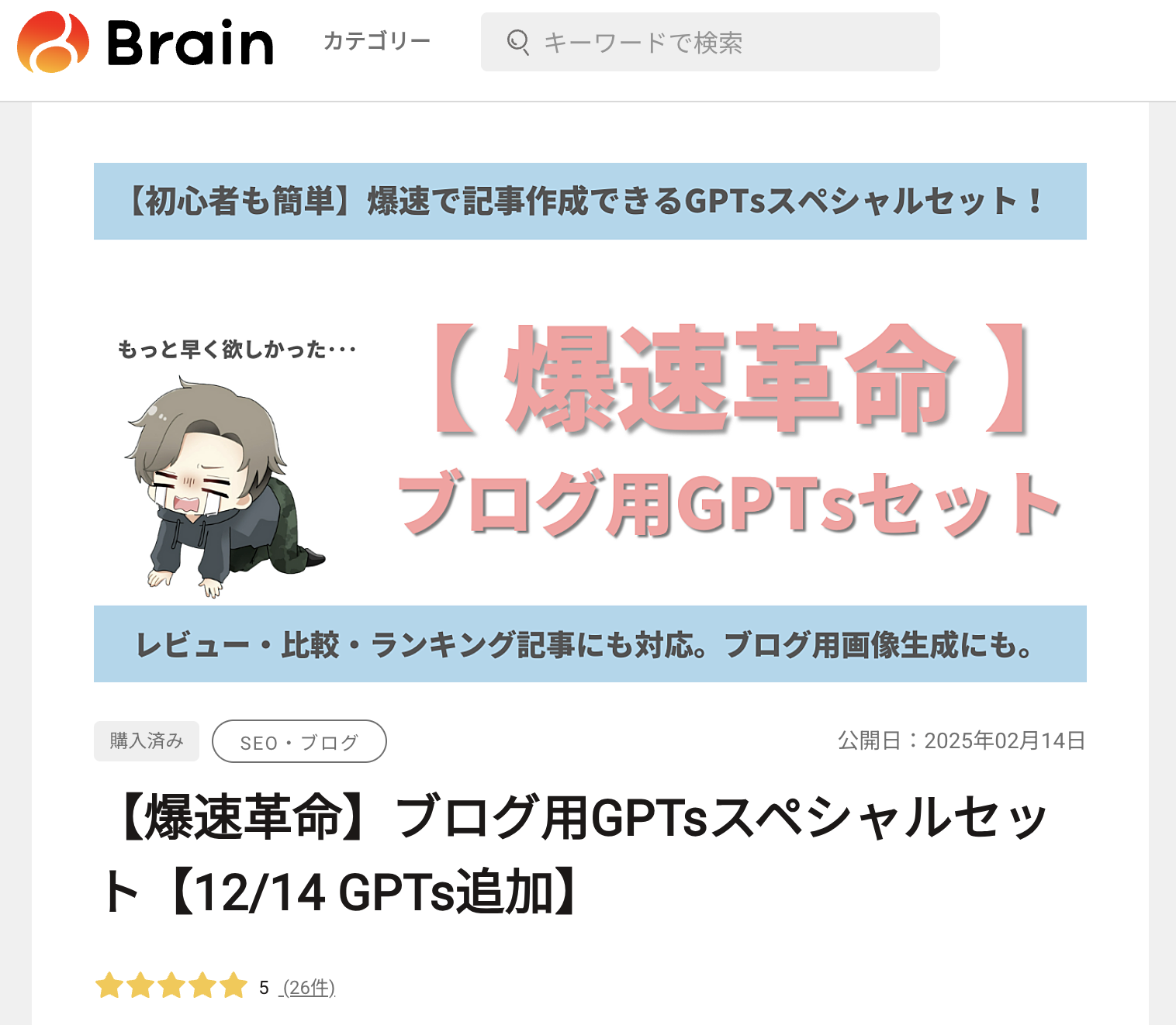 | 販売ページ | Brainの販売ページ |